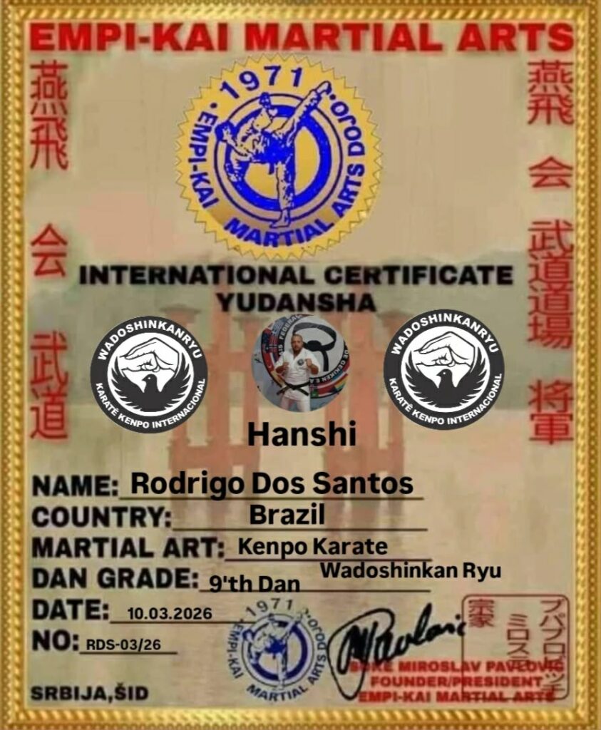 Como parte desse acordo de cooperação internacional, a Empi-Kai Martial Arts reconheceu oficialmente o *estilo Wadoshinryu Karate Kenpo, sistema marcial fundado pelo mestre brasileiro *Hanshi Rodrigo dos Santos. O estilo Wadoshinryu nasce da integração entre princípios tradicionais do karate, fundamentos do kenpo e influências de diferentes sistemas de combate estudados ao longo de décadas de prática e pesquisa marcial.